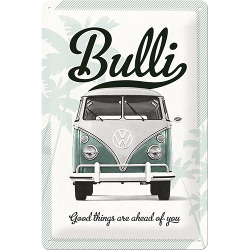 Metallskylt 20×30 cm ”Volkswagen Bulli, good things are ahead of you”