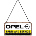 Metallskylt (hängande) 10x20cm ”Opel Parts and service”