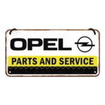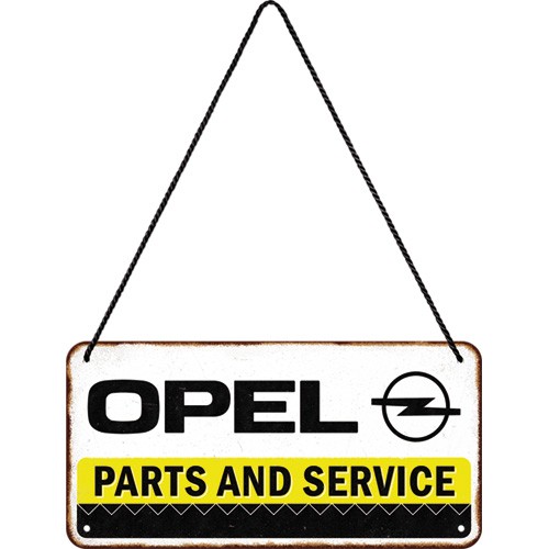 Hängande metallskylt, 10×20 cm – ”Opel Parts and service”