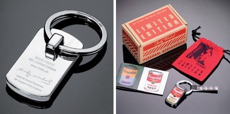 De 4 olika nyckelringarna tillverkades i en begränsad upplaga av 6 000 st per motiv; varje nyckelring är numrerad. Exklusiv förpackningsbox och nyckelringen i tygpåse.