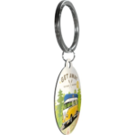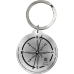 En rund nyckelring med Ø (diameter) 4 cm, rostfritt stål. Framsida i förseglad epoxy med matchande baksida och med kraftig ring för nycklarna.