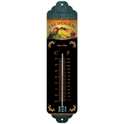 Våra populära termometrar i plåt har en klassisk välvd form. Förborrat hål finns både upptill och nertill på termometern. Den fungerar lika bra inne som ute.