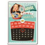 Vykortet i plåt med präglade kanter och evig kalenderfunktion (månad/dag) – kan användas år efter år. Två magnetiska ringar medföljer för att markera dag (1-31) och månad (Jan-Dec).
